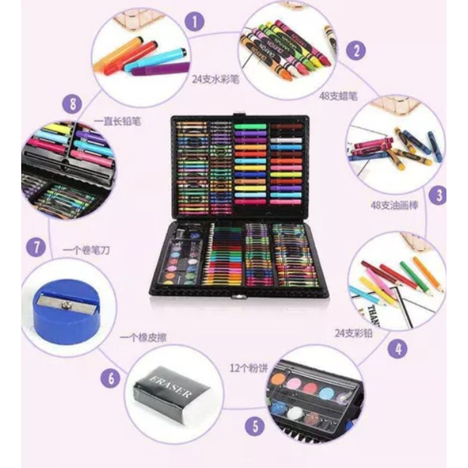 Este conjunto de arte de 168 piezas lo tiene todo para inspirar su imaginación. Ideal para pintar, dibujar o ilustrar, es la herramienta perfecta para desarrollar habilidades artísticas y mantener entretenidos durante horas, en casa o donde sea.
